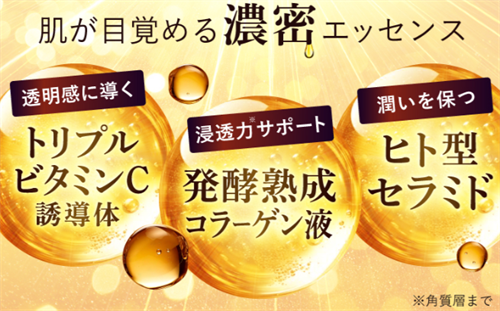 発酵熟成コラーゲン液やヒト型セラミドをブレンドした99%以上の美容成分が角質層までしっかり浸透し、くすみケアと潤いキープを同時に実現。