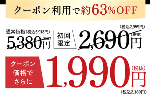 - 初回購入時は通常価格5,918円(税込)が約63%OFFの2,189円(税込)で購入できます。