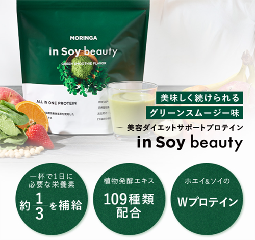 ダイエットプロテイン inSoybeautyは、美容とダイエットを同時にサポートする理想的なプロテインです。