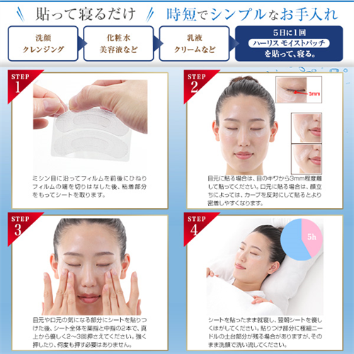 ハーリス モイストパッチを貼る際には、以下のポイントを意識すると、「しっかり密着し、美容成分が角質層へ浸透しやすくなります」。