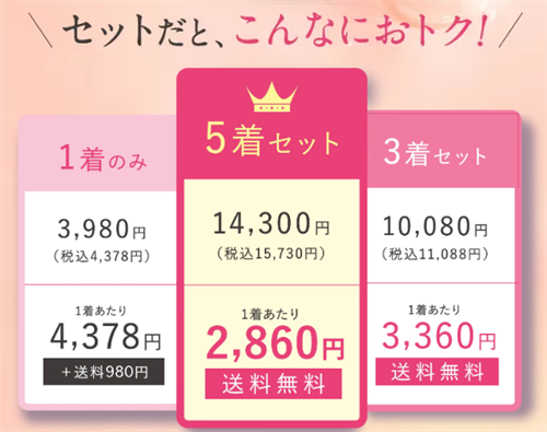 特に5着セットは1着あたり2,860円と、かなりリーズナブルな価格設定です。
