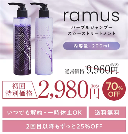 ここでは、ramusのパープルシャンプーとスムーストリートメントを分けて、より具体的に解説していきます。