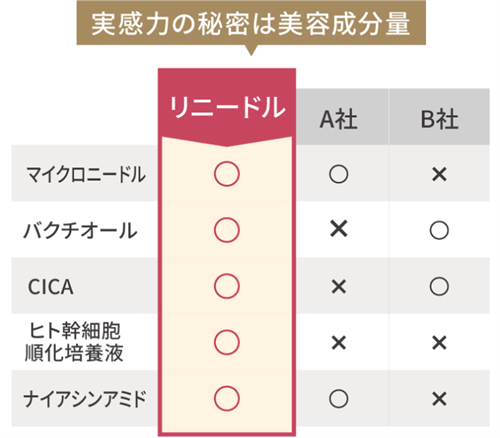 Re:needle(リニードル)には、エイジングケアに効果的な5つの主要成分が配合されています。