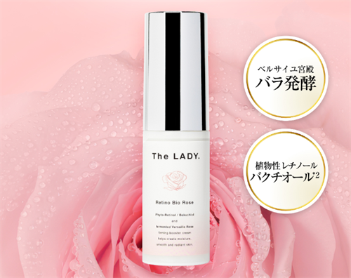 この製品は、ヴェルサイユ宮殿のバラ発酵菌エキスと、植物性レチノール「バクチオール」を配合し、肌にハリと潤いを与えながら、健康的で輝くバラ色の艶肌を目指します。
