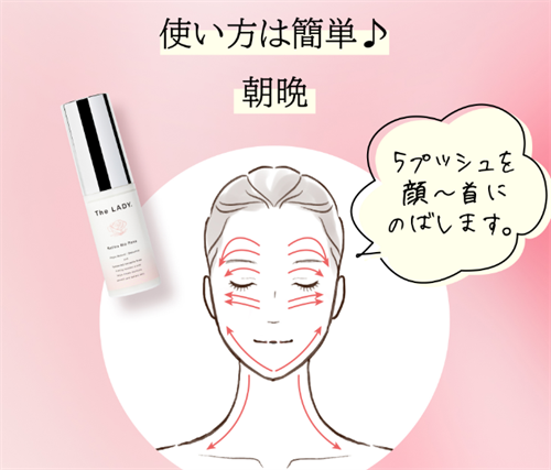 このクリームは、5プッシュを顔全体に伸ばすだけで、肌のハリや弾力を取り戻し、艶やかで若々しい印象を保つことができます。