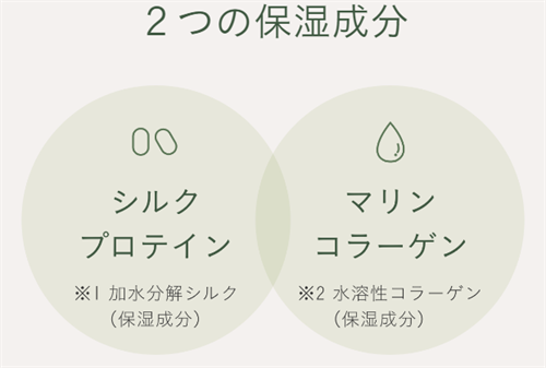 | 保湿成分 | シルクプロテイン、マリンコラーゲン |