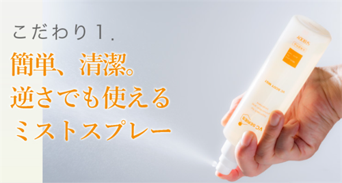 | 使いやすさ | 逆さまでも使えるスプレーボトルで全身に均一にスプレー可能 |